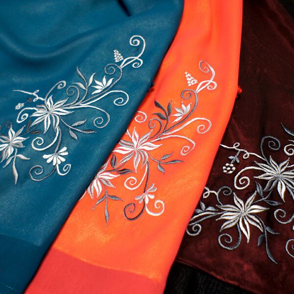 美しい花刺繍と二枚仕立てが高級感のあるチャイナドレスです。異なった質感・色の生地を重ねることで、他にはない美しいチャイナドレスが完成しました!外側には透け感のある柔らかなシフォン生地を重ねているので、内側の生地の色や柄が程よく透け、妖艶で美しい色味・質感に仕上がっています。 また、胸元と裾に施した繊細な花刺繍は上品で大人っぽい印象。安心感のある膝丈がうれしいチャイナドレスは、二胡などの中国楽器の演奏や結婚式などのパーティードレスとしてぜひおすすめしたい1着です。