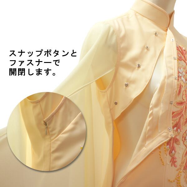 【即納】羽衣マーメイドチャイナドレス マキシ丈(クリーム×ライトイエロー)