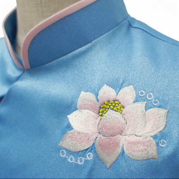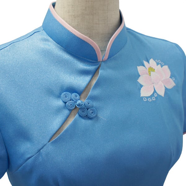 【即納】ロータス蓮チャイナドレス 半袖 ミニ丈(ライトブルー)