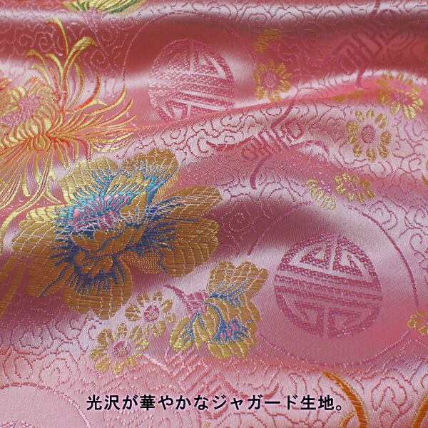 ポリエステル:光沢が美しくしっかりとした肌触りで、ハリのある一般的なチャイナ生地です※安心の裏地付き。裏地はさらっとした肌触りの、薄手ポリエステル生地です。