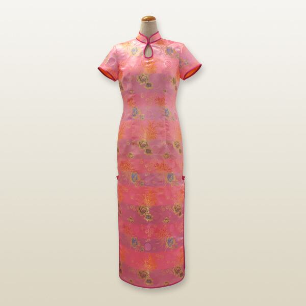 【即納】ティアドロップ定番チャイナドレス 半袖 ロング丈(ピンク)