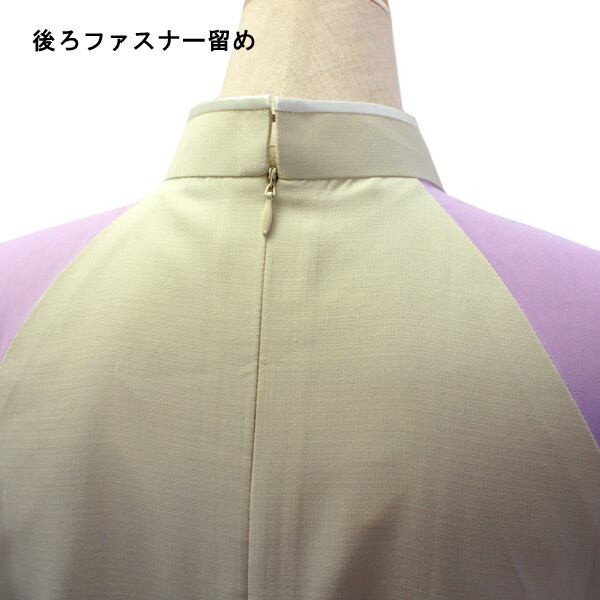 後ろファスナー留め。